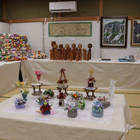 天候は、台風22号と23号の合間となり、10月11日(土)は小雨の中、公民館での作品展示を行いました。